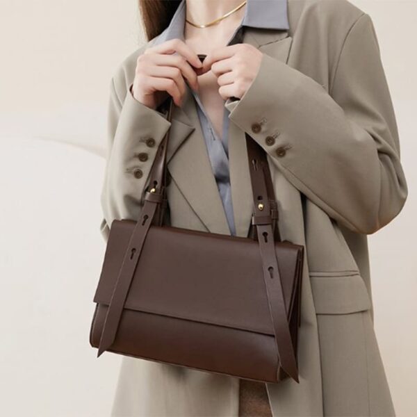 The bag is made from imported cowhide, the leather is plump and comfortable to touch, with clear and visible grain patterns. The details are full and matched with contrasting stitching to create a striped pattern on the body. The bag is equipped with one long and one short shoulder strap, with a single shoulder diagonal...