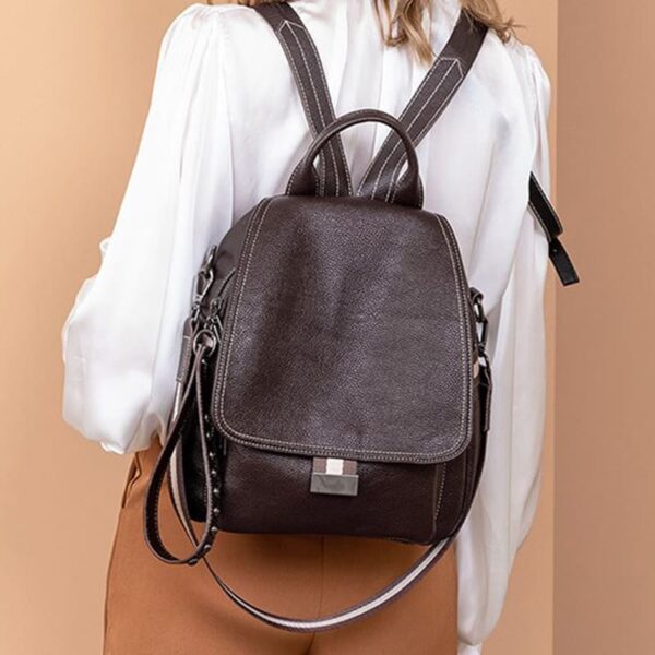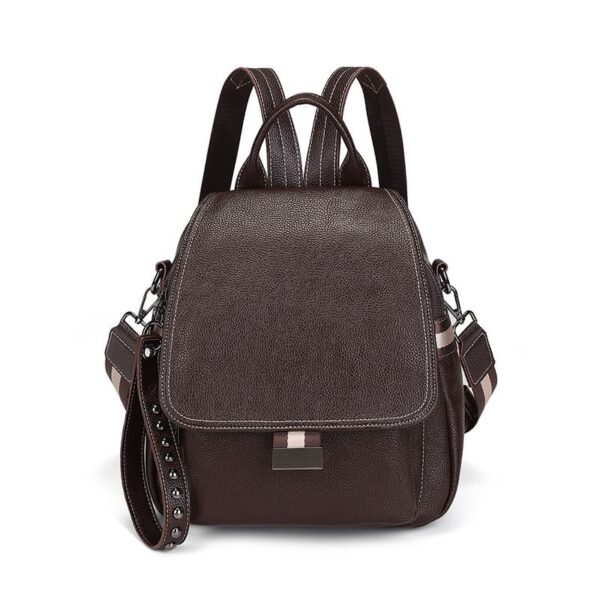 Backpacks outer material is soft high quality genuine leather,decorative silver-tone hardware,and high quality cotton striped lining. Women backpack purse with multiple organization pockets are for your essentials in organized.Exterior two zipped pockets in front let you keep your phone, wallet and umbrella easily accessible.Two side pockets are for your water or other small items. Backpack...