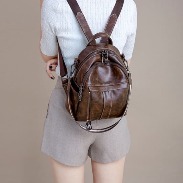 Soft synthetic leather with heavy duty zipper hardware. Detailed Double streamlined stitching. Full-lined coffee color fabric lining. Double Zipper Design is convenient for opening in two directions. Tassel Pendant Design has already highlighted the backpack. This womens backpack is made of high-quality PU leather, soft, smooth and without any smell.The soft and smooth cotton lining...